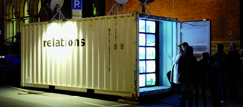 Kategorie Künstlerische Interventionen im öffentlichen Raum; Rauminstallationen; Veranstaltungsreihe Produktionid3d-berlin gmbh LeistungenCo-Konzeption, dramaturgische Gestaltung, Idee und Gestaltung von Container, Medienwand und Lounge